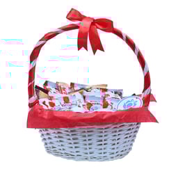Basket 5 "Kinder" chocolates 5 "Kinder" bueno 2 "Kiner" delice 3 "Nutela" b-ready 3 "Kinder" country 2 "Nutella" 25 gram