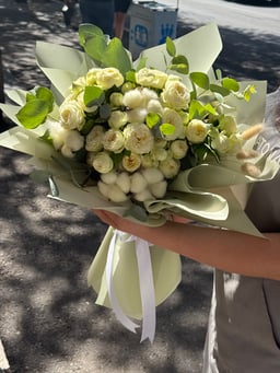 Bouquet ‹REDDISON› with peony roses and cotton