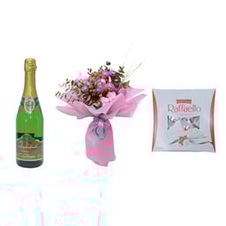 Gift Set with Flowers, Champagne, and Raffaello – Perfect for Celebrations